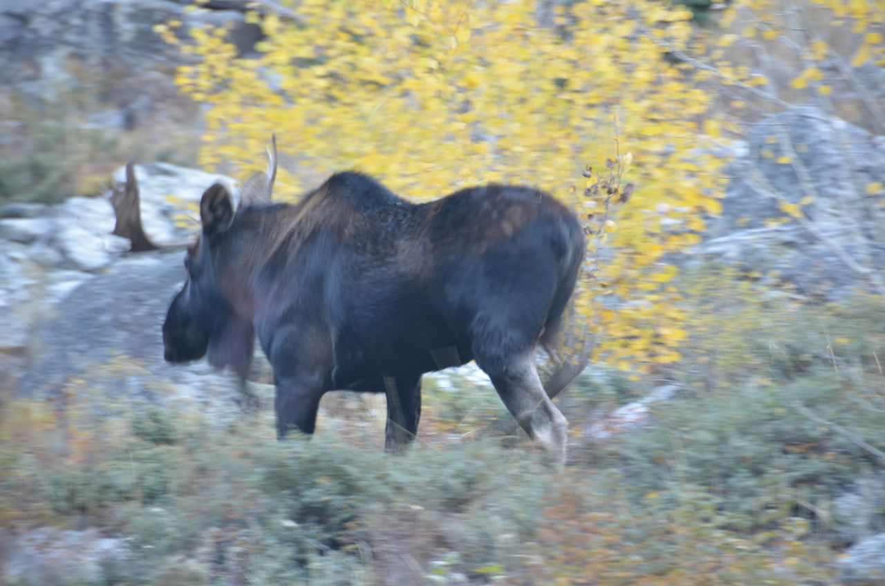 It was big and had spikes on his antlers, so we stopped about 100 feet away. Bullwinkle was nervous, obviously didn’t like us there, and he ran off into the bushes.