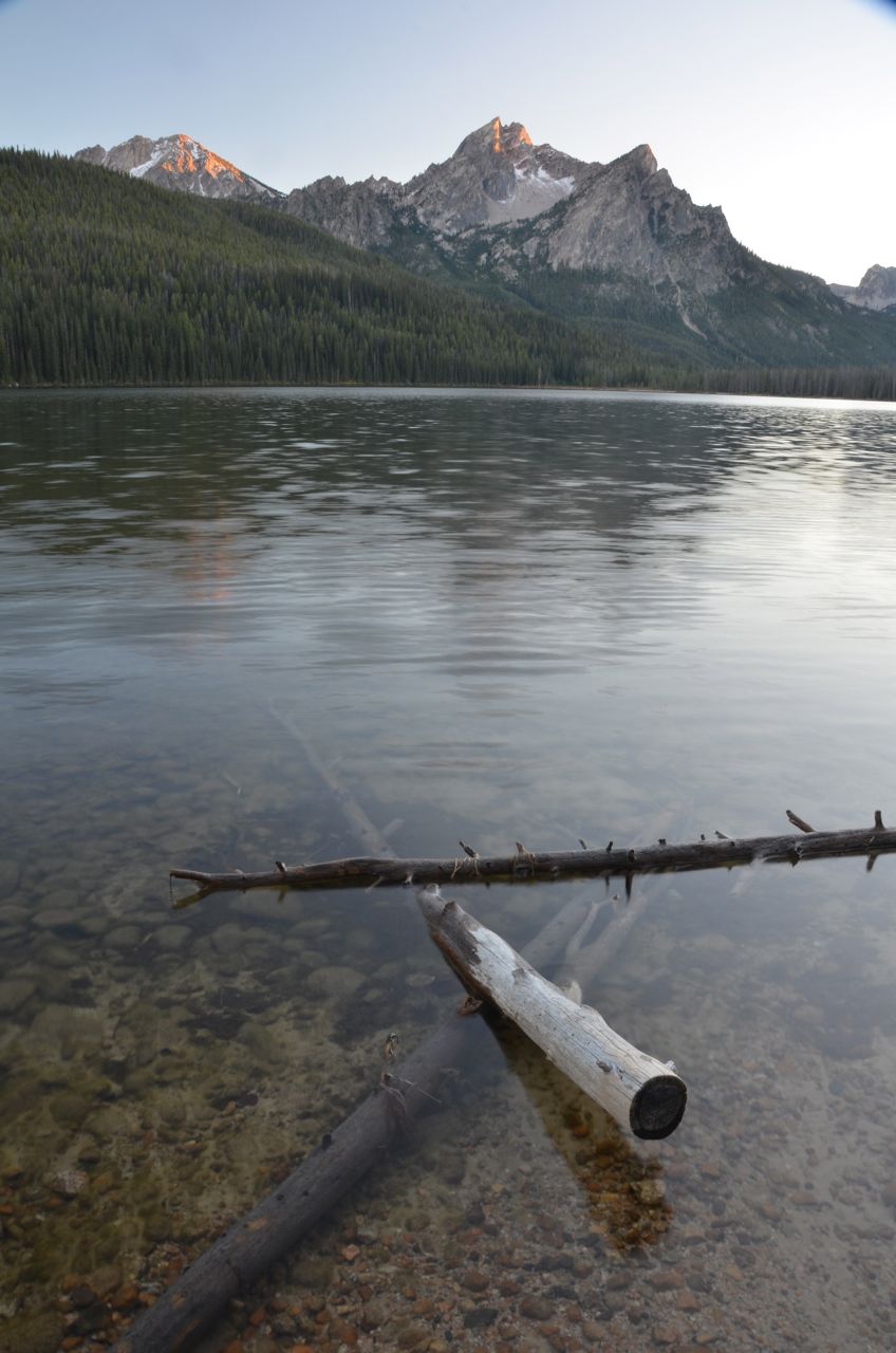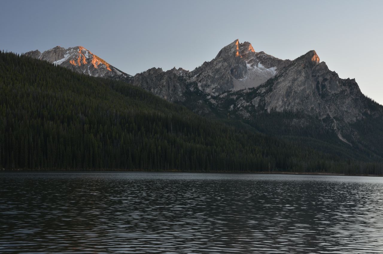 So we headed back down and further north to Redfish Lake, where I had camped 12 days earlier with Frank and Clair and had confirmed the campground would be open for this trip with John. They were wrong, it was closed. So we headed to Stanley Lake, arriving just in time for sunset on the peaks: