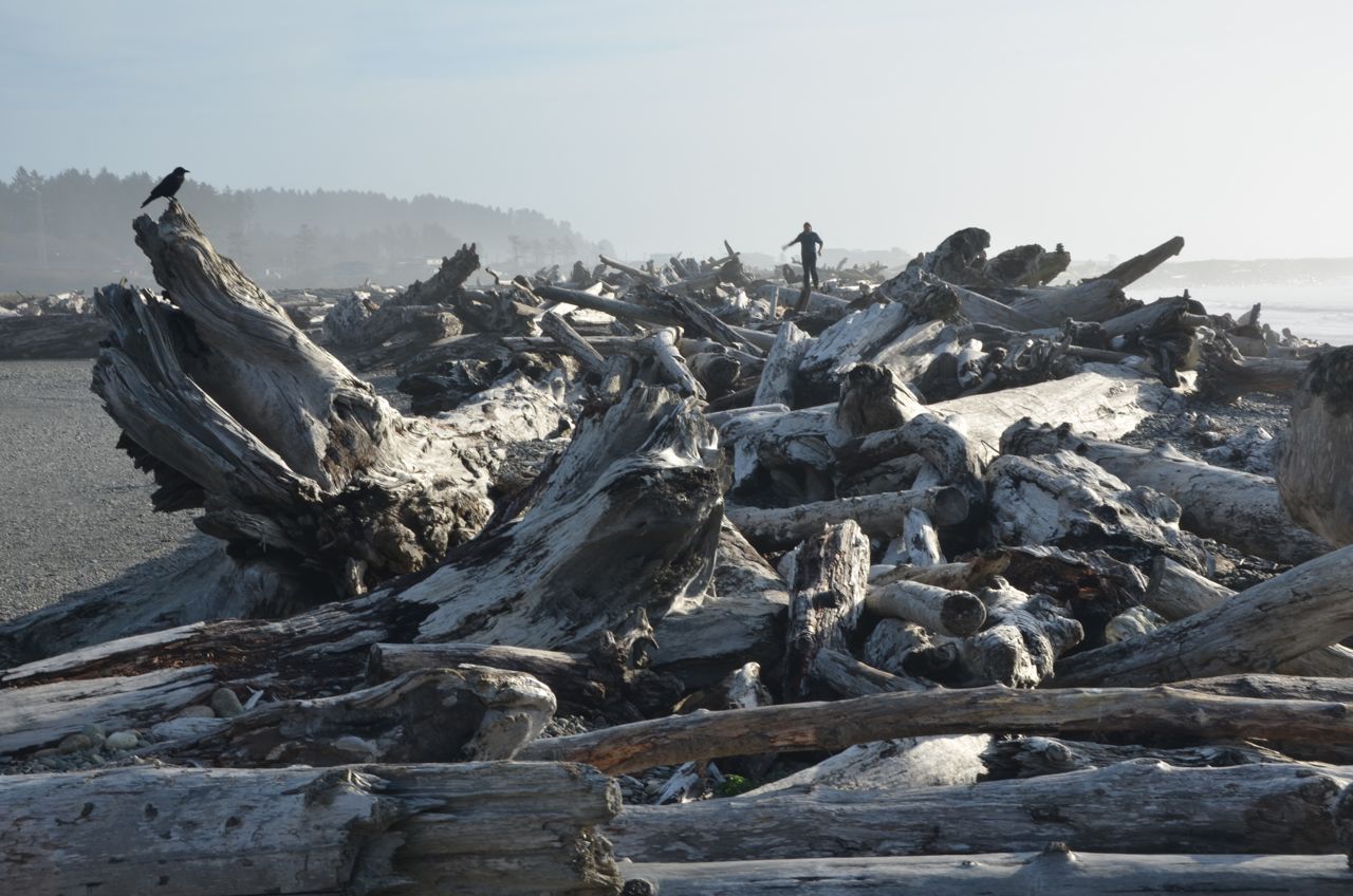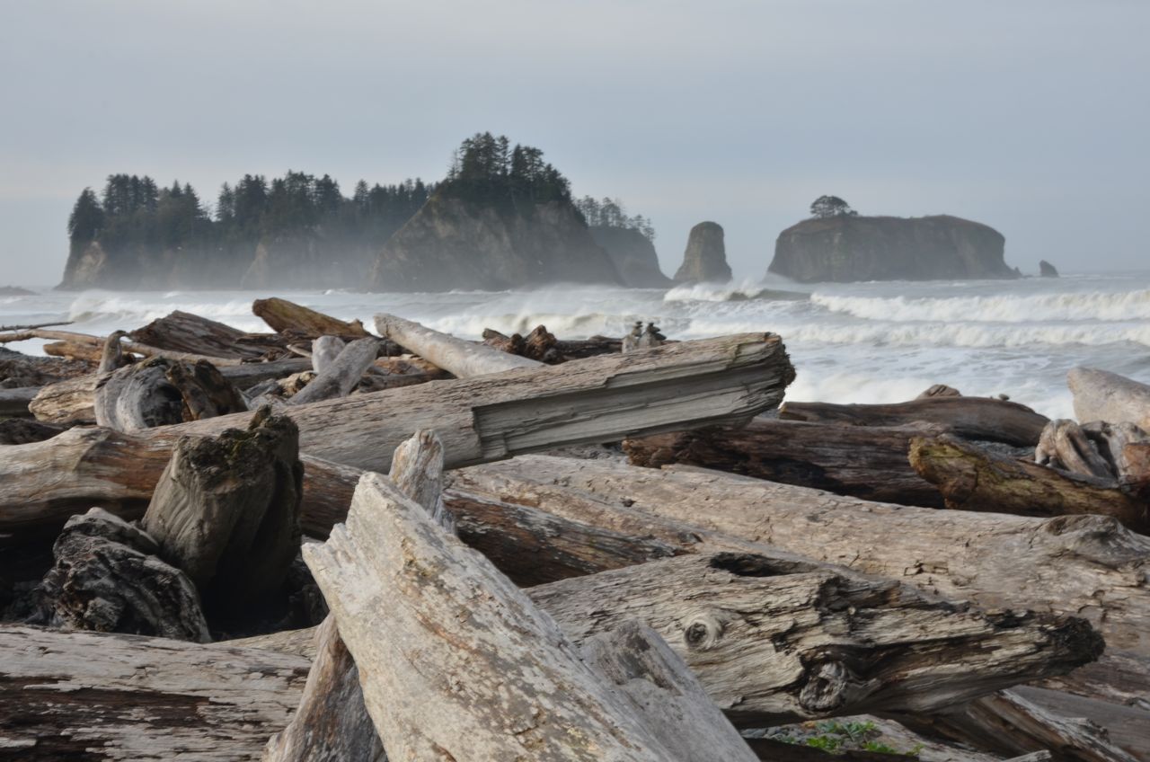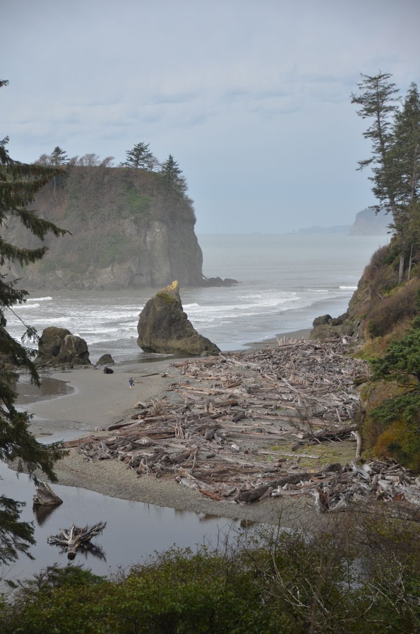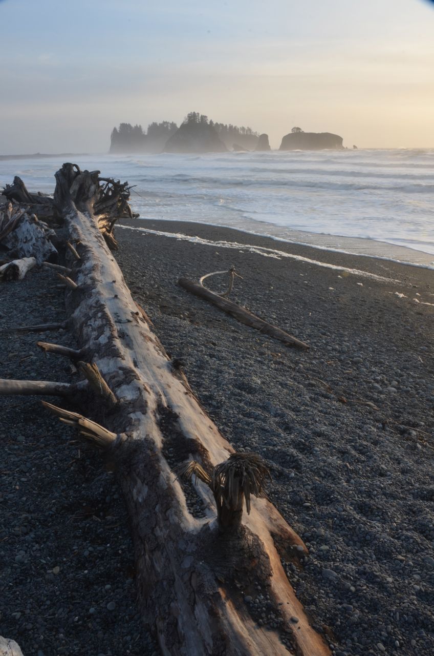 After that I doubled back about 10 miles to Marymere Falls, but I took no photos there, as the skimpy falls were a letdown after Sol Duc.  I drove to Rialto Beach and camped in the nearby Mora Campground, a coastal area of Olympic National Park that I’d never been to before. I didn’t even know it existed until this trip. The next morning I took a 3-mile hike up the Rialto Beach wilderness, going north along the beach; if not for low tide, it would have been impossible (the north-south “Pacific Northwest Trail” noted on Google Maps at Rialto Beach is not a trail but simply the beach). As it was, the surf did catch me up to my ankles, so now I have slightly more radioactive boots, which is apropos since I just finished reading “A Tale for the Time Being.” But my favorite Danner Goretex boots didn’t leak, and got me through some impressive debris in prime tsunami country.