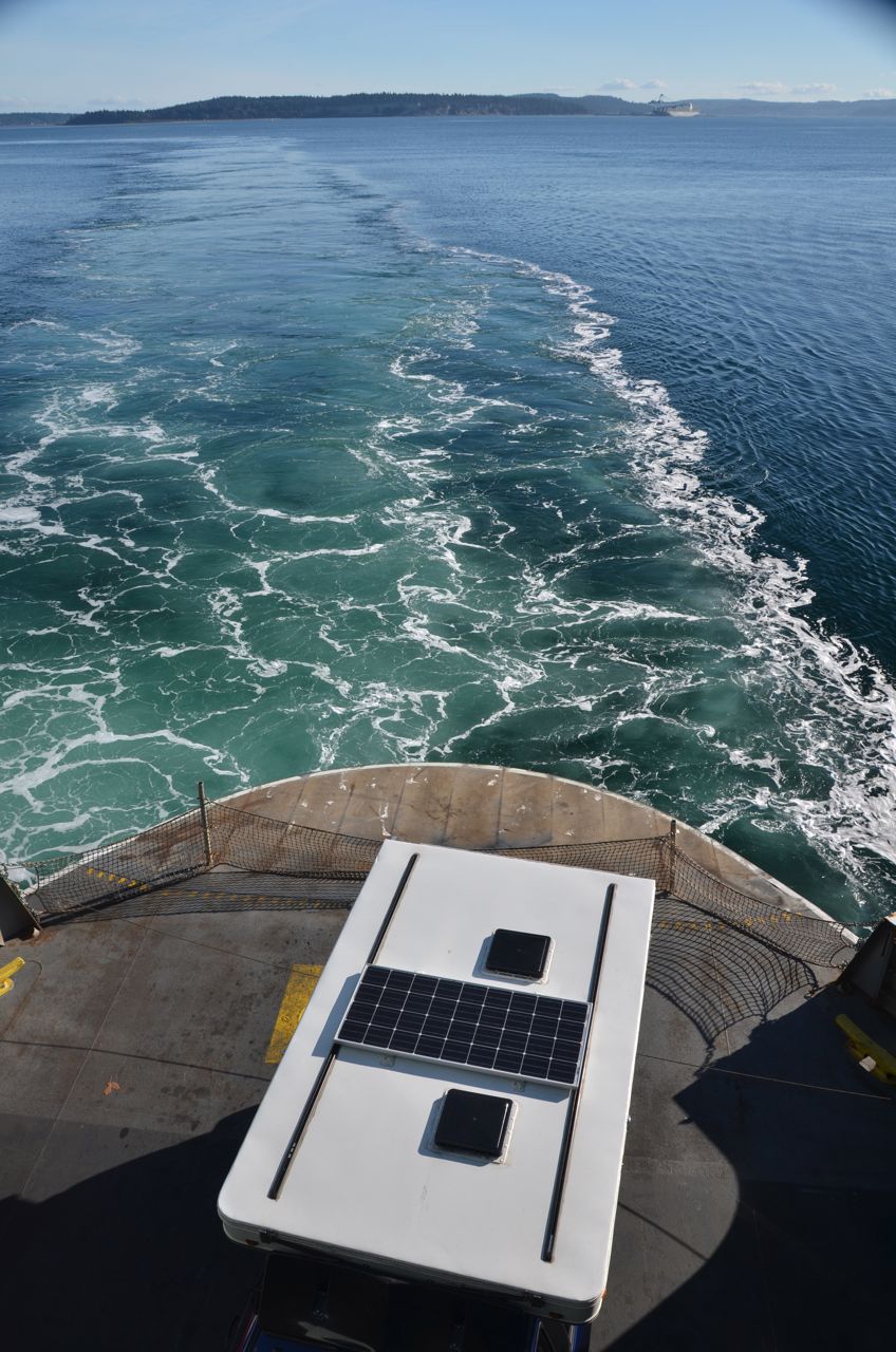 Taking the shortest route to Olympic National Park, I left Vancouver on Tuesday morning (Oct. 20) and arrived at the Port Townsend ferry without a reservation, but was lucky to be the last to board, just squeezing onto the back of the ferry, and thereby continuing to feed the solar panel…  LastOnFerry