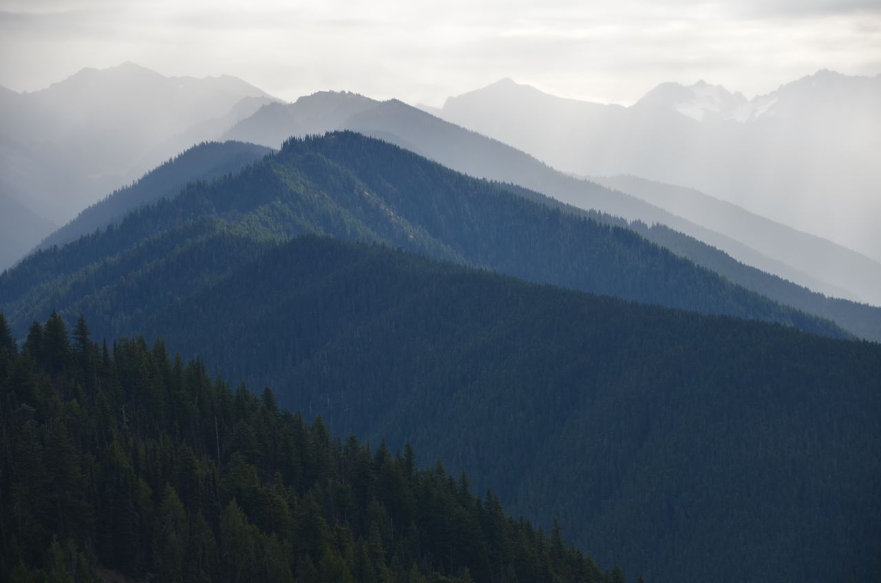 Mordor  The east side of the park was dramatic, but the west side was too wet for my taste:  It rained for 36 hours in a downpour, testing the watertightness of my camper and the longevity of my batteries, which had no solar or engine charge for that whole time.  It was a strong reminder that I had arrived in rainforest territory where my solar panel would not be a reliable energy source.  Fortunately, the camper didn’t leak and the batteries kept running the fridge and lights, and they took a recovery charge well, so no harm done.  But my boondocking in the Pacific Northwest will be limited to three nights at a time before having to plug into “shore power” or to run the engine.