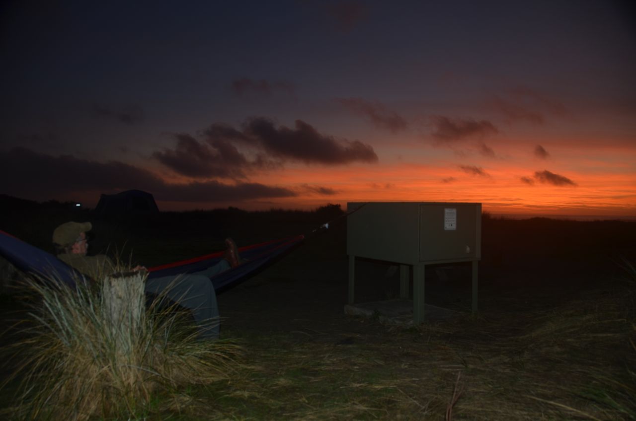 From Kalaloch Campground, I headed south again along Rte. 101, and got to Oregon Dunes National Recreation Area by dusk, so I camped in the large campground there. Okay, you know what dunes attract, right? (Wait for it…)
