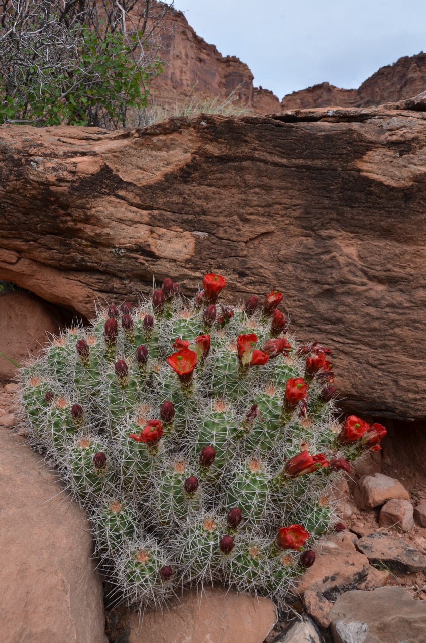 On Saturday, April 23, I drove from Boise to Moab, Utah, intending to grab whatever campsite I could find nearby, given that Arches NP and Canyonlands NP were booked solid well in advance. The plan was that, once I found and claimed a site, I would call my Colorado friends Gordon and John about it, since they were driving from Durango and Cortez on Sunday to meet me for a few days of red-rock camping and hiking. We knew the odds were against us during peak season, so we were prepared to search as far as Blanding, 75 miles south on Rte. 191, to find a campsite in a desert landscape before it gets too hot.